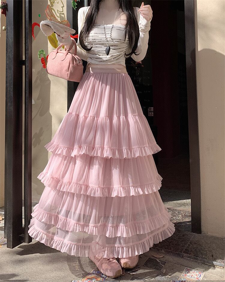 チュールのフリルを贅沢に使用したティアードスカートです♡