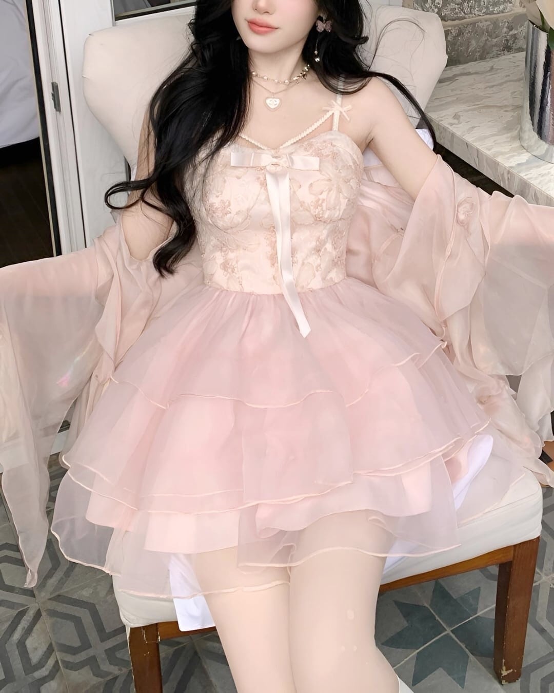 肩と胸元のリボンと、花柄デザインがより甘さを増しています✨