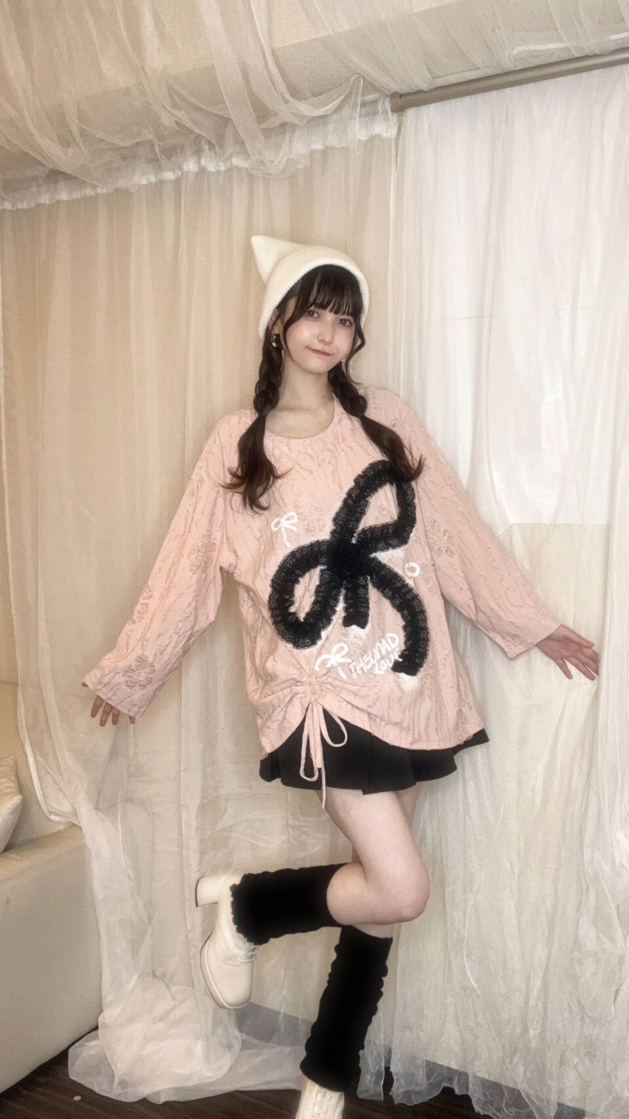 レースアップリボンやダメージ、ロングTシャツもダボっとしておりガーリーY2Kな雰囲気があります!♡
